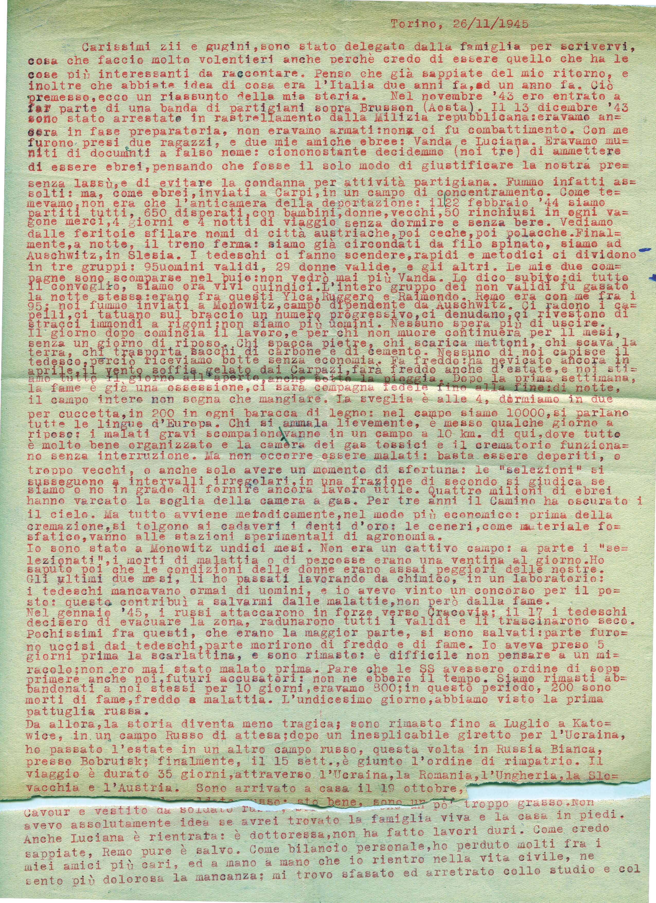 PDF GIORNO DELLA MEMORIA 2016 - Gallerie Estensi Fu destinato al campo di lavoro di Mònowitz, ma dopo un breve ricovero nel KA-Be, morì il 21 aprile 1944. 8. Testimonianza diretta e toccante dei suoi ultimi mesi di vita è la lettera di un deportato torinese, sopravvissuto al campo di Mònowitz, scritta al fratello minore di Cesare, Lorenzo Lonzana. Torino, Via San Francesco di Paola n. 41