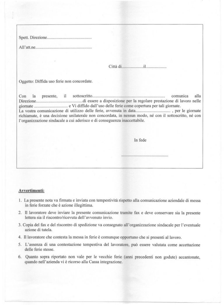 Richiesta pagamento ferie non godute: fac simile lettera WORD