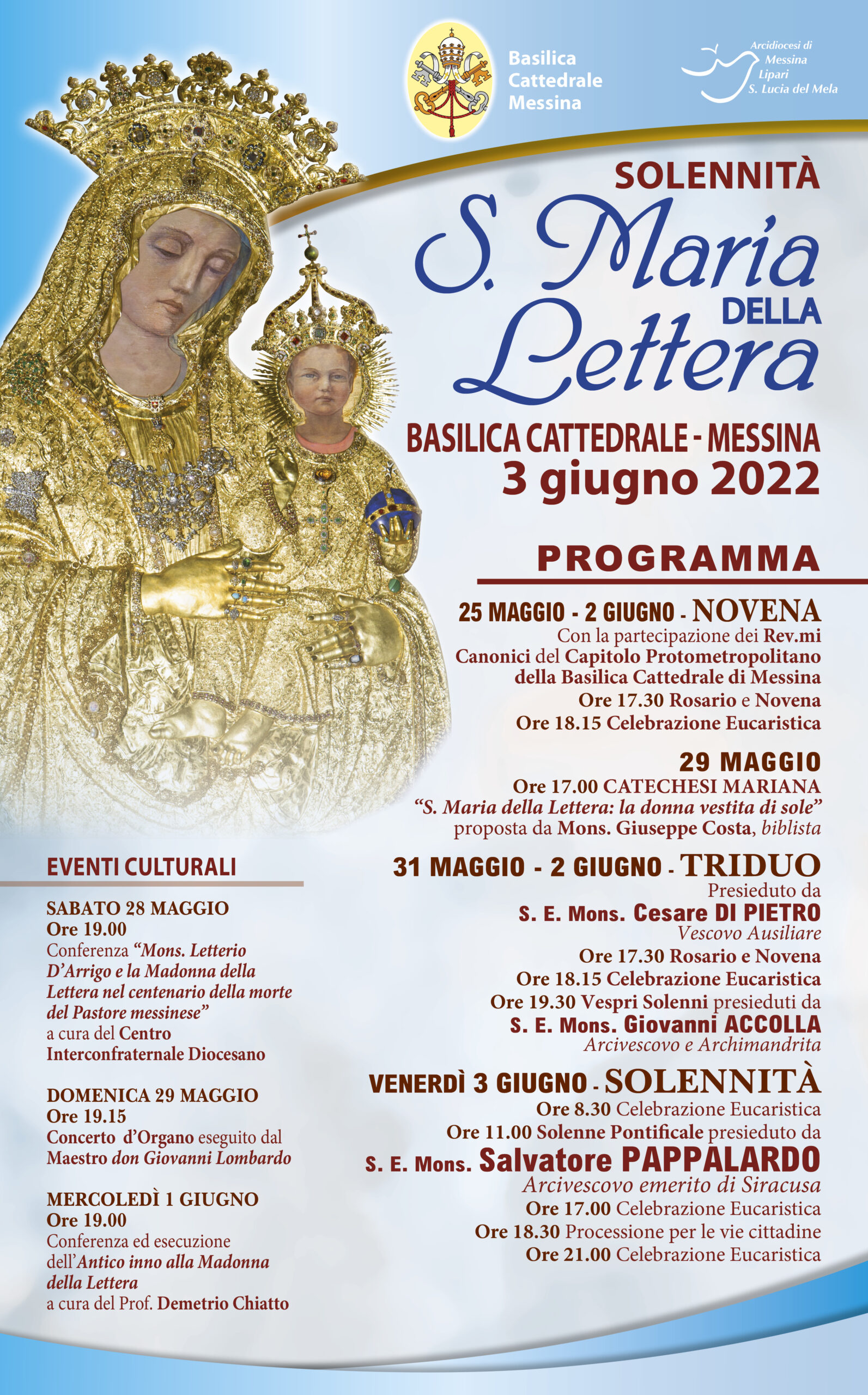 Madonna della Lettera di Messina: l'incredibile testo scritto ... Jun 3, 2021 · Da quel giorno la città siciliana di Messina celebra ogni anno la festa della Madonna della Lettera il 3 giugno. In quella data si svolge infatti affollata processione del fercolo argenteo della Madonna. Il testo che Maria consegnò alla delegazione dei messinesi, inoltre, è clamorosamente ancora leggibile. Stele della Madonna della Lettera Map - Work of art - Messina ... Stele della Madonna della Lettera Stele della Madonna della Lettera is a work of art in Messina, Messina.Stele della Madonna della Lettera is situated nearby to Forte del Santissimo Salvatore and Fountain of Neptune.