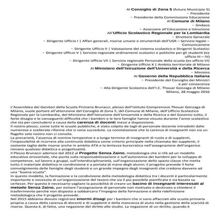 Lettera della Dirigente agli alunni, ai genitori e a tutto il personale ... Lettera-della-preside-settembre-2021Download. Salta al contenuto. domenica, Aprile 16, 2023 ... ATTO DI INDIRIZZO DEL DIRIGENTE SCOLASTICO 2022-25; PTOF 2022-25; PTOF- ARCHIVIO; Indirizzi di Studio. Liceo Scientifico; ... Lettera della Dirigente agli alunni, ai genitori e a tutto il personale per l'inizio dell'anno scolastico Gita annullata alle medie 'Pellico': i genitori protestano e scrivono ... Così, stamattina hanno preso carta e penna e scritto alla dirigente dell'Istituto comprensivo "Camerano - Giovanni Paolo II - Sirolo", Flavia Maria Teresa Valentina Cannizzaro, e, per conoscenza, all'Ufficio scolastico regionale. Una lettera infuocata già nell'oggetto, «Mancanza di collaborazione e inefficienze», firmata dall ...