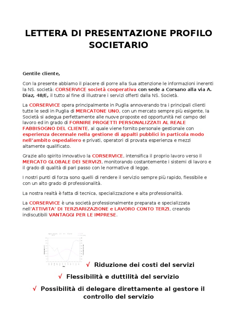 Esempio di lettera di presentazione per Servizio Clienti - Cvapp.it Usa questo modello di lettera di presentazione per Servizio Clienti per ultimare la tua candidatura ed essere assunto velocemente - di' addio a dubbi e incertezze. Questo esempio di lettera di presentazione è stato studiato appositamente per la professione di Servizio Clienti nel mercato del 2023. Aprire una cooperativa di servizi: tutto quello che devi sapere Aprire una cooperativa di servizi è una strada che può portare ad una vera e propria soddisfazione professionale, ma come accade per ogni tipo di azienda è bene definire gli obiettivi. A questo proposito può essere utile considerare la formula multiservizi. Si tratta di organizzare più attività come servizi proposti all'esterno. Statuto Cooperativa - Modello - Modulo X . Indicare il tipo di cooperativa che si vuole porre in essere, e per il quale si vuole il presente statuto. La cooperativa sociale è un tipo di cooperativa, che oltre al fine mutualistico tipico di ogni cooperativa, presenta come oggetto sociale quello del perseguimento dell'interesse generale della comunità alla promozione umana e all'integrazione sociale dei cittadini. BUSINESS PLAN FAC SIMILE PRESENTAZIONE - Notiziario Finanziario Il prestito personale risulta invece in forte contrazione. 3.2. Propria posizione sul mercato. La posizione dell'azienda sul mercato è abbastanza significativa. La forte domanda dei prodotti ritenuti il "core business" lascia presagire un aumento degli utili. 3.3. Osservazione del mercato.